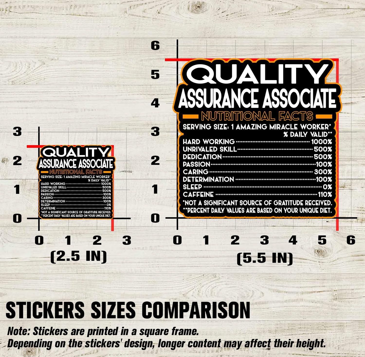 (4Pcs) Quality Assurance Associate Vinyl Decal Sticker – Nutritional Facts Quote for Laptops, Water Bottles, Cars – Gift for Coworker, Office, Birthday, Christmas – Waterproof Vinyl Sticker
