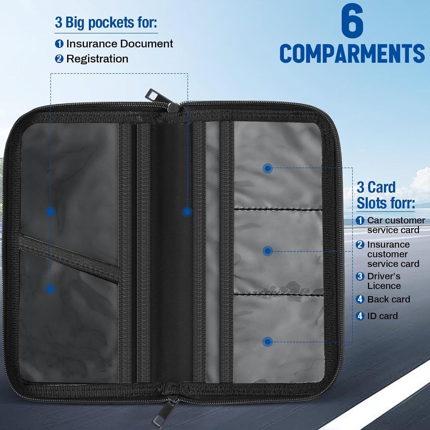Compact and Organized Storage: designed for convenience, this registration and insurance card holder is compact enough to fit effortlessly into your glove box; With three large pockets and three small pockets, it accommodates both large files and smaller cards, ensuring that your car registration and insurance holder keeps your glove box tidy and organized