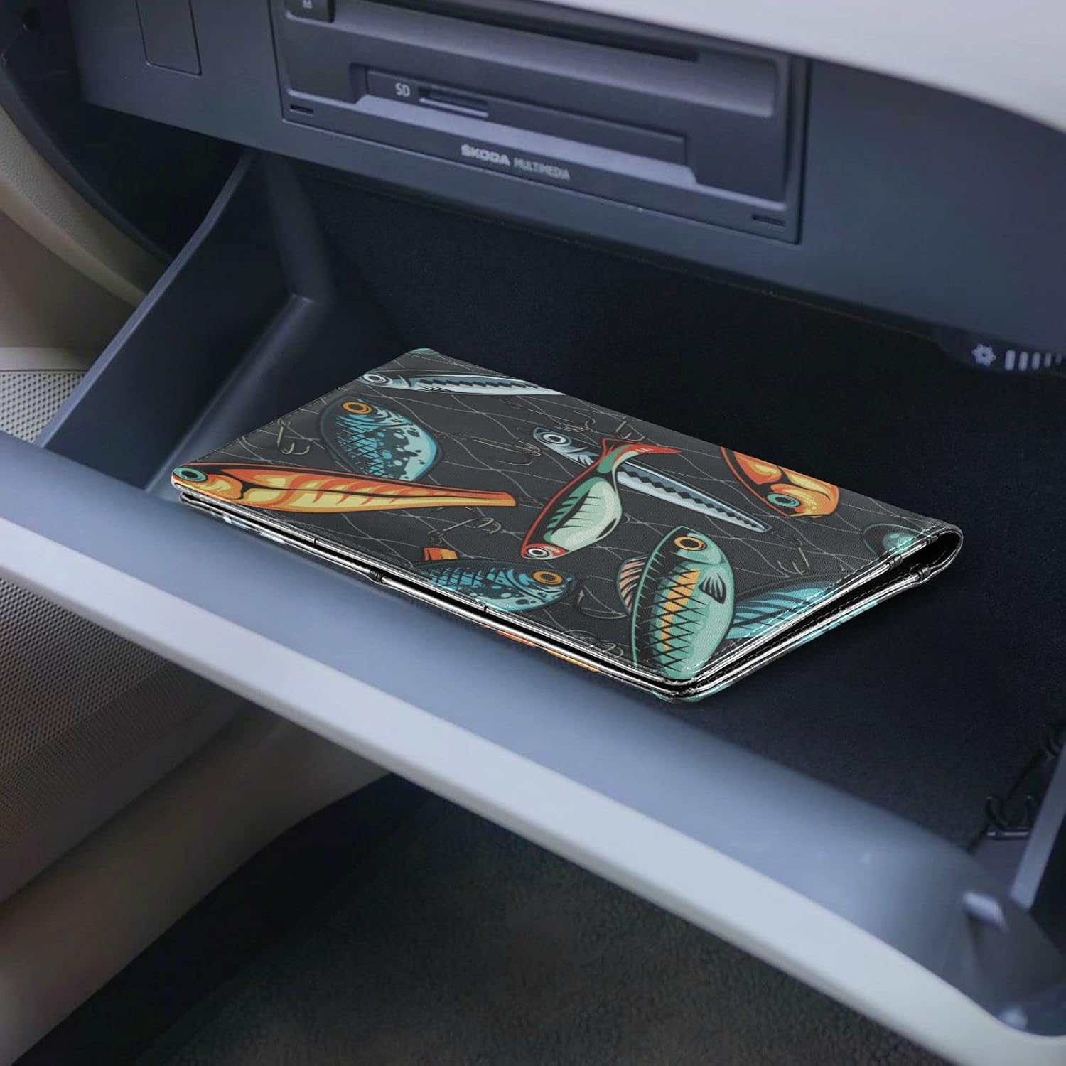 Car Registration and Insurance Card Holder Leather Glove Box Organize Men Women Wallet Accessories Case for Cards, Essential Document Driver License Fishing Baits Lures