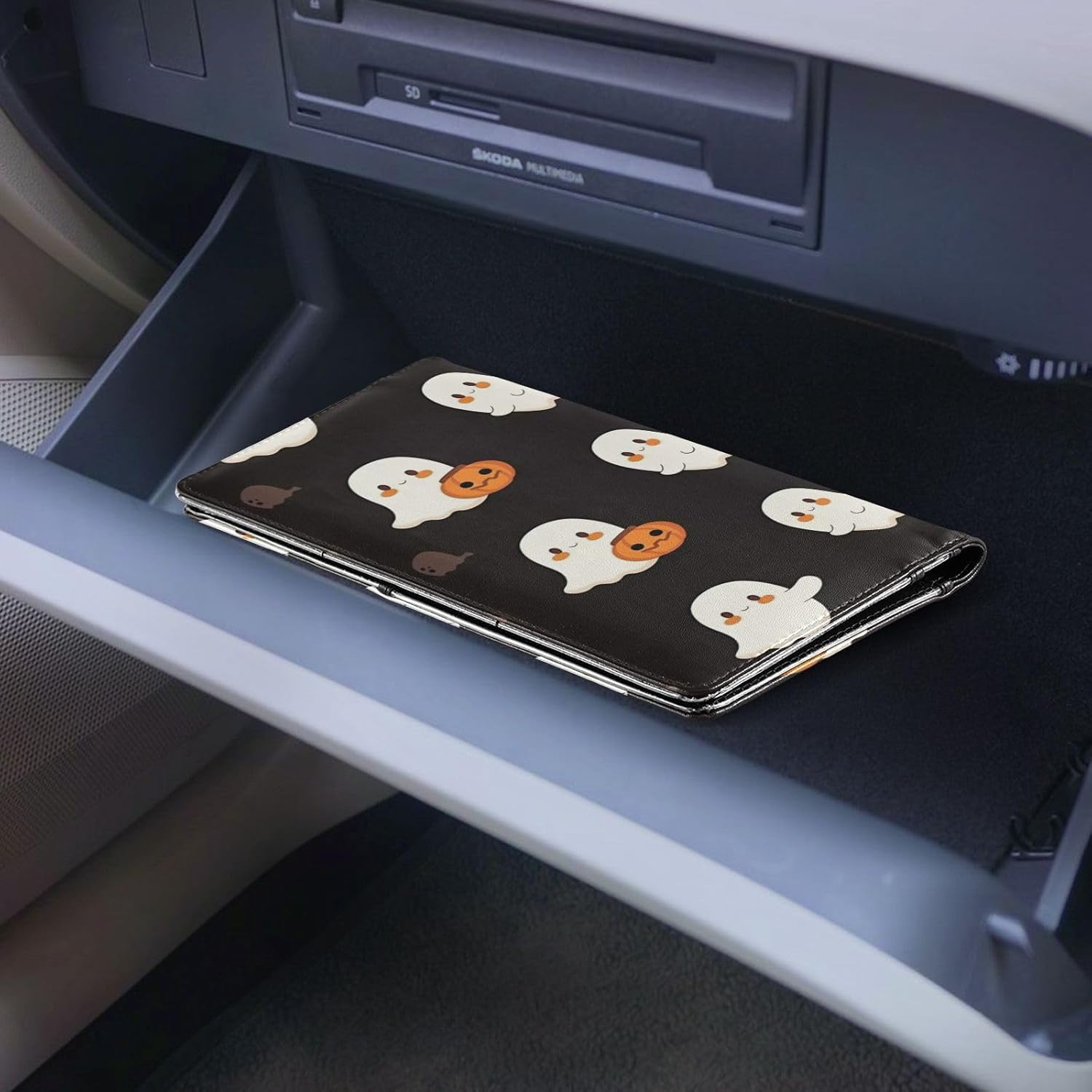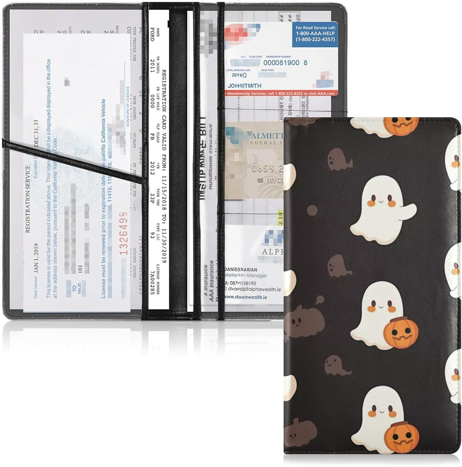 Standard Size & Slim Design — 9.5″ x 5″ x 0.3″. Perfect Fit for Most Glovebox or Console Compartment. 1 Large Pocket for Car insurance. 2 Pockets to Vehicle Registrations Cards. 3 Small Slots Can Fit Other Items.