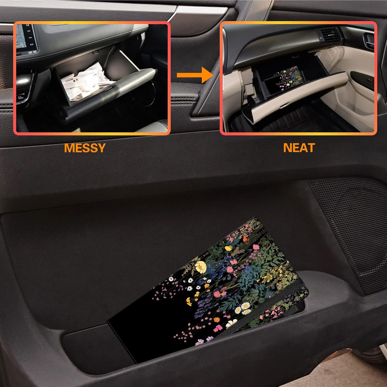 ⭐ COMPACT & VERSATILE: Measuring just (when closed 9.6*5.2*0.5 inch) (unfolded 10.3*9.5*0.4 inch), this car document holder fits perfectly in glove compartments, sun visors, door holders, consoles, and more.