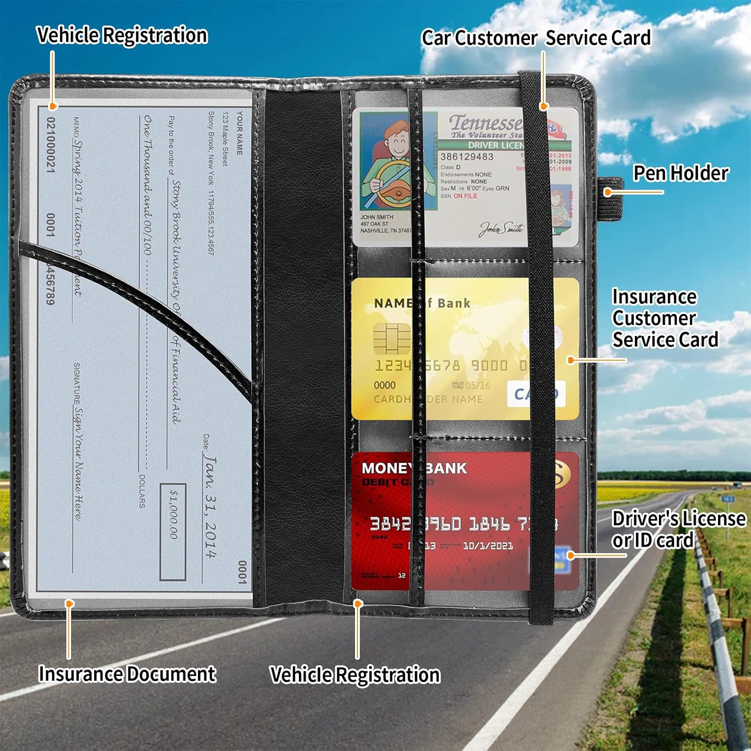 ❤This organizer for car is made from high-quality ECO-friendly PU leather material. The registration holder leather is durable, wear-resistant, and has a luxurious look. The insurance card holder for car many clear window so you can easily see all the documents when you open it up.