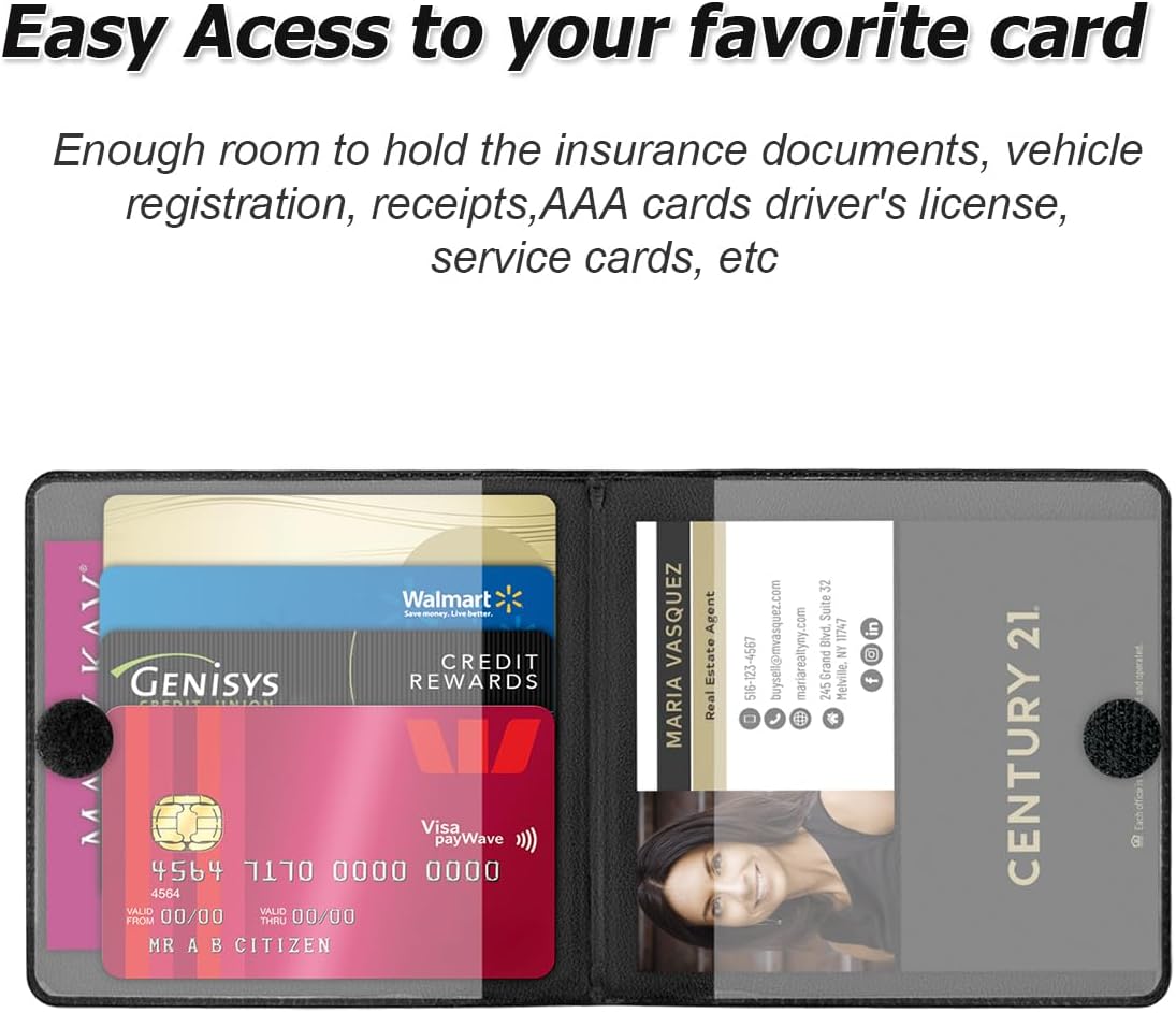【Wide Application】: The sports car registration and insurance holder is 4.8″ x 10.6″ when unfolded, and can be easily placed in car visor organizer, door storage compartment or console when folded in half. Widely used in cars, trucks, vans, trailers, motorcycles and boats.
