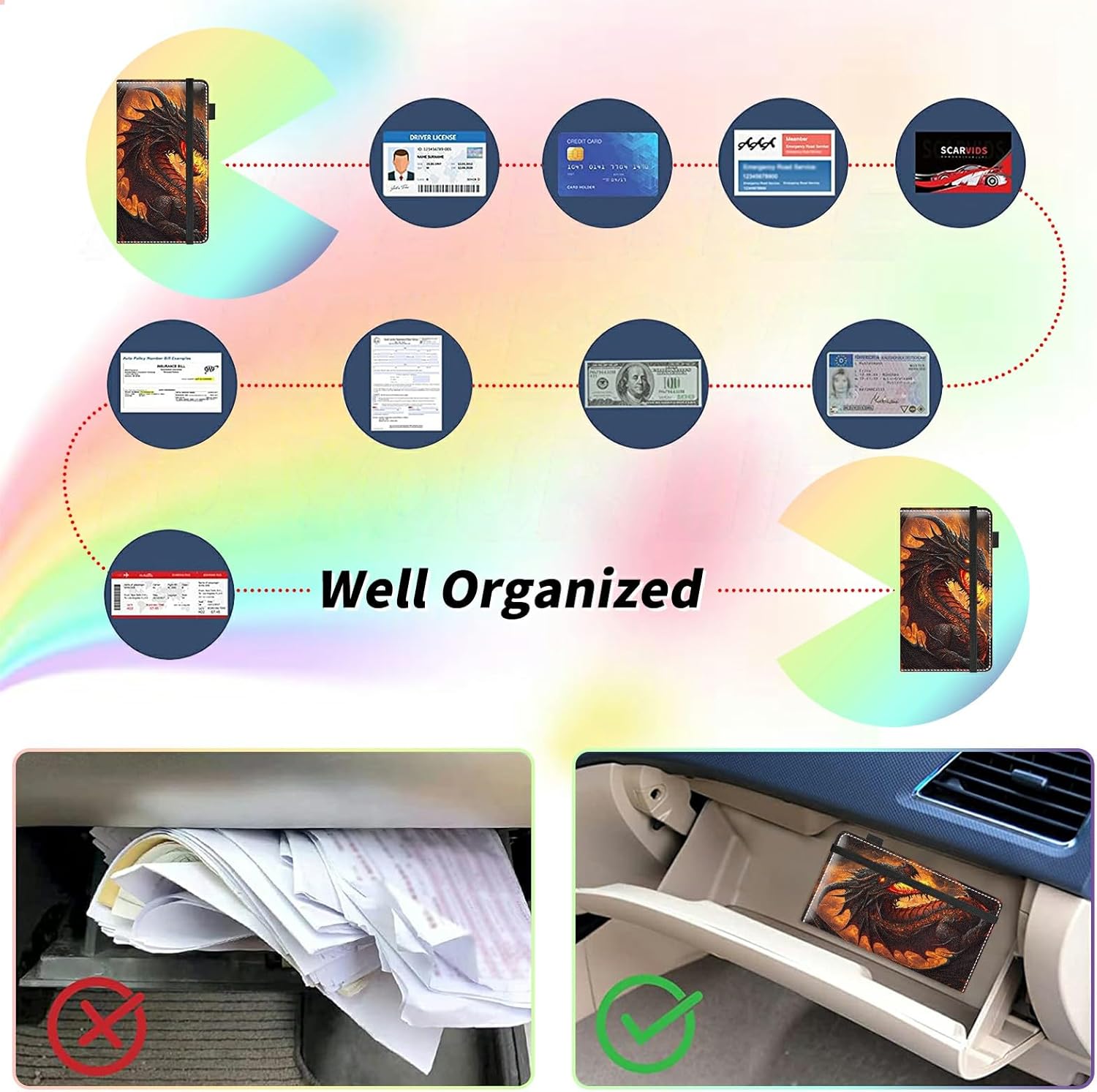 Car Paperwork Organizer: Perfect designed auto car document holder, keeps all important document such as registration and insurance card, business cards, emergency information, paperwork, gas card well organized and looks much better than just scattered in the glove box.
