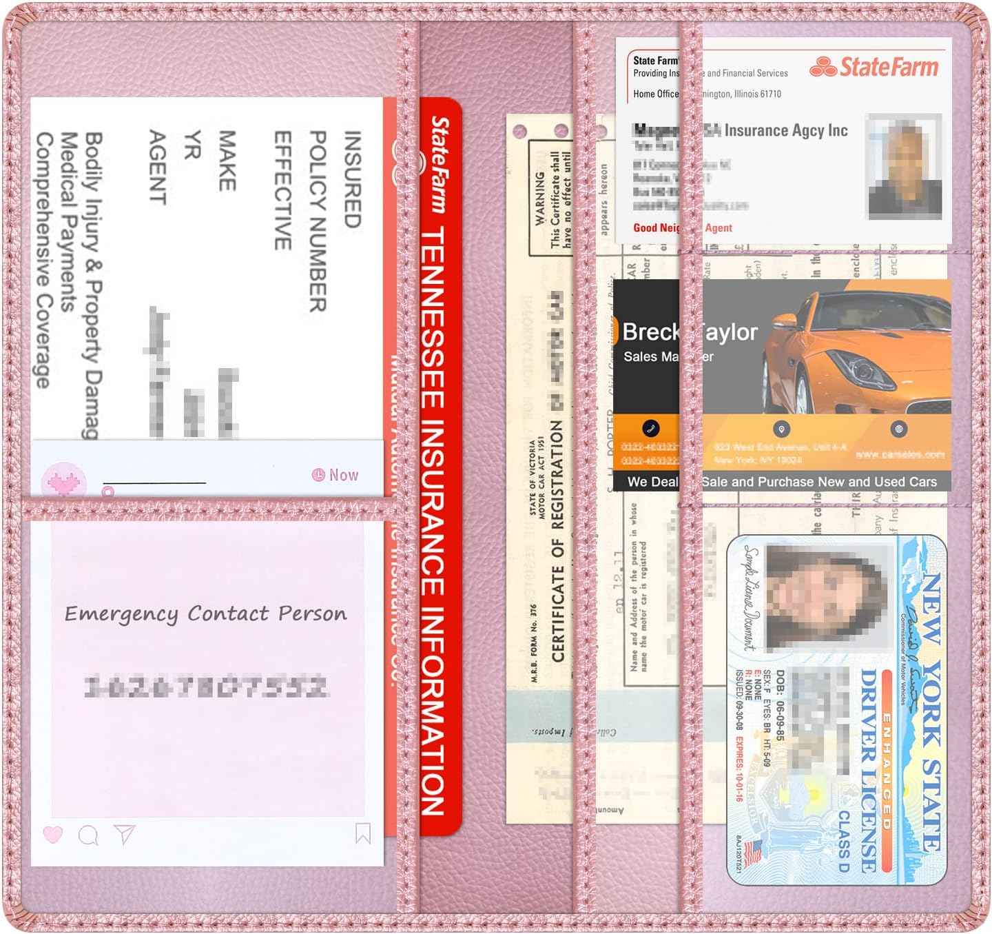 Multi-pocket Design: 2 pockets on the left and 4 pockets on the right, meet your different needs such as organize insurance cards, registration documents, credit cards and essential papers.